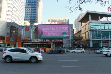 建国大道鞍山客运总站旁墙面大牌